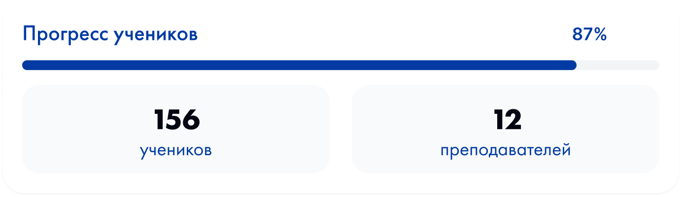 Внедрение с нашей помощью занимает 2 недели: моментальное подключение к платформе, интуитивно понятные материалы и интерфейс для преподавателей и учеников.